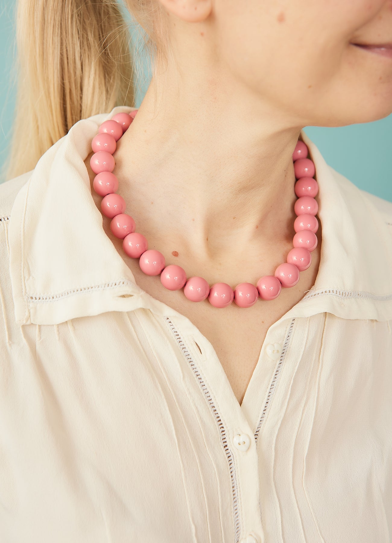 Fin perlekæde med store, blanke perler i resin. Perfekt til at pifte ethvert outfit op.