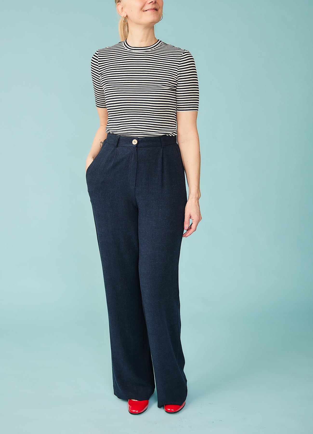Linda Pants i hørblanding - mørkeblå