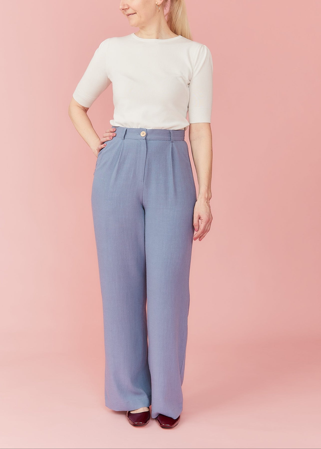 Super lækre bukser i den blødeste blanding af viskose og hør. Buskerne har et klassisk snit med høj talje, små læg foran, lommer i siden og lige ben. Stoffet er silkeblødt med lidt struktur, hvilket giver et dejligt afslappet udtryk.