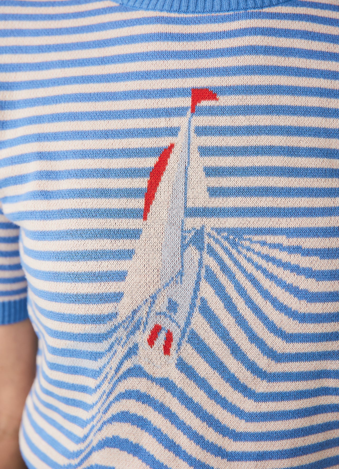 Fantastisk fin stribet t-shirt med et twist. Jacquardstrikket i en lækker, kraftig kvalitet i 100% GOTS-certificeret bomuld.
