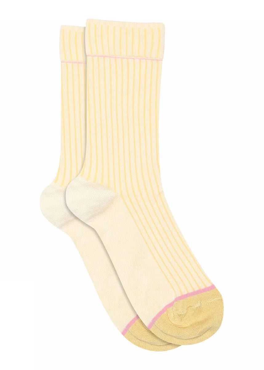 Ribstrikkede strømper med smalle striber på langs. Den anatomisk formede hæl sikrer en naturlig pasform, mens forstærkning ved hæl og tå gør dem ekstra holdbare, så du kan bruge dem igen og igen.