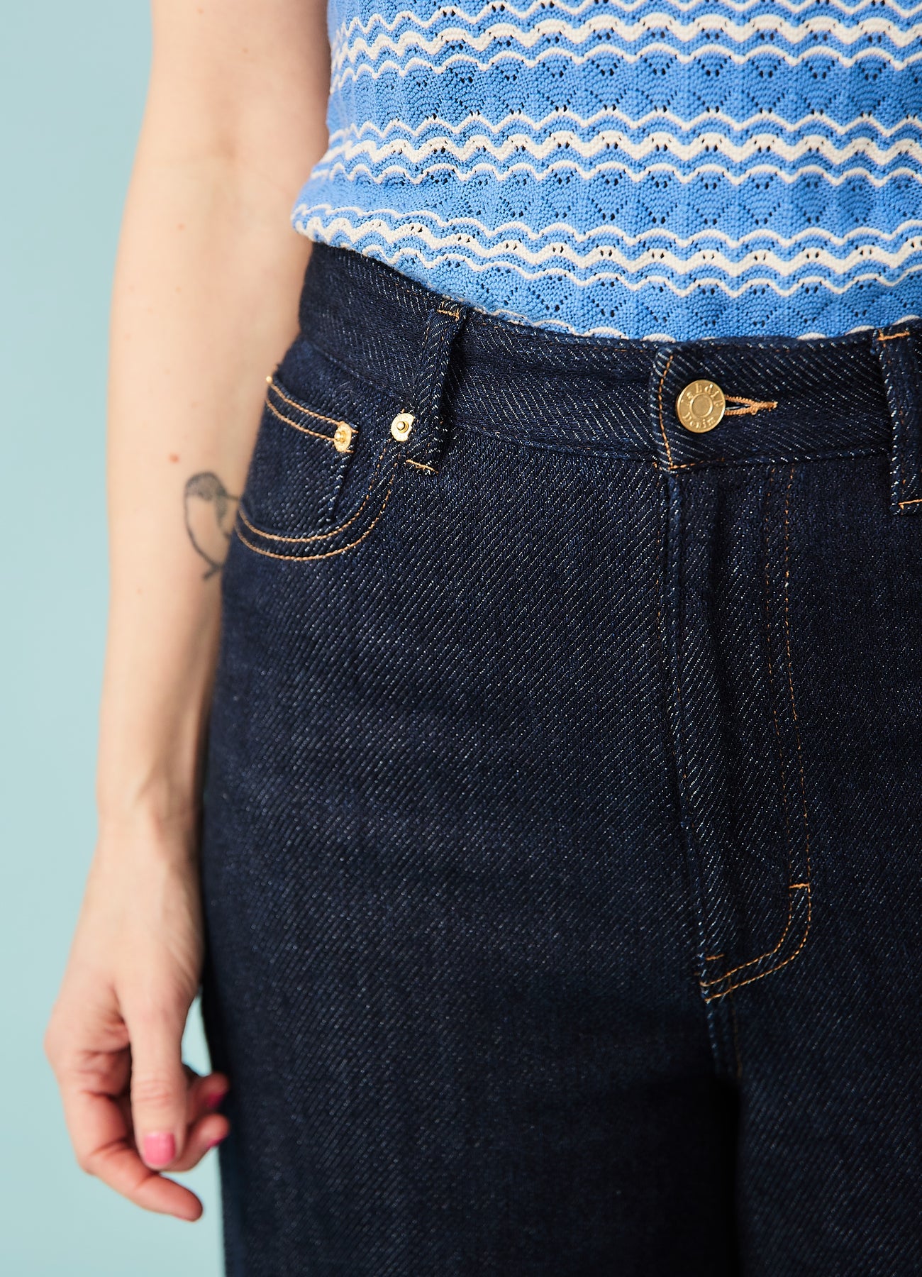 Perfekte vintageinspirerede jeans fra franske Labdip. Bukserne har høj talje og bukseben med masser af vidde. De er lavet i en virkelig lækker og meget blød denim i 100% bomuld. På afstand ser stoffet groft ud, men i virkeligheden er det blødt som fløjl og har et lækkert tungt fald.